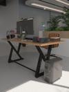 Silver Ahşap Çalışma Masası 220x85x76 cm Ön Ahşap Antrasit Renk Ayak - Image 1