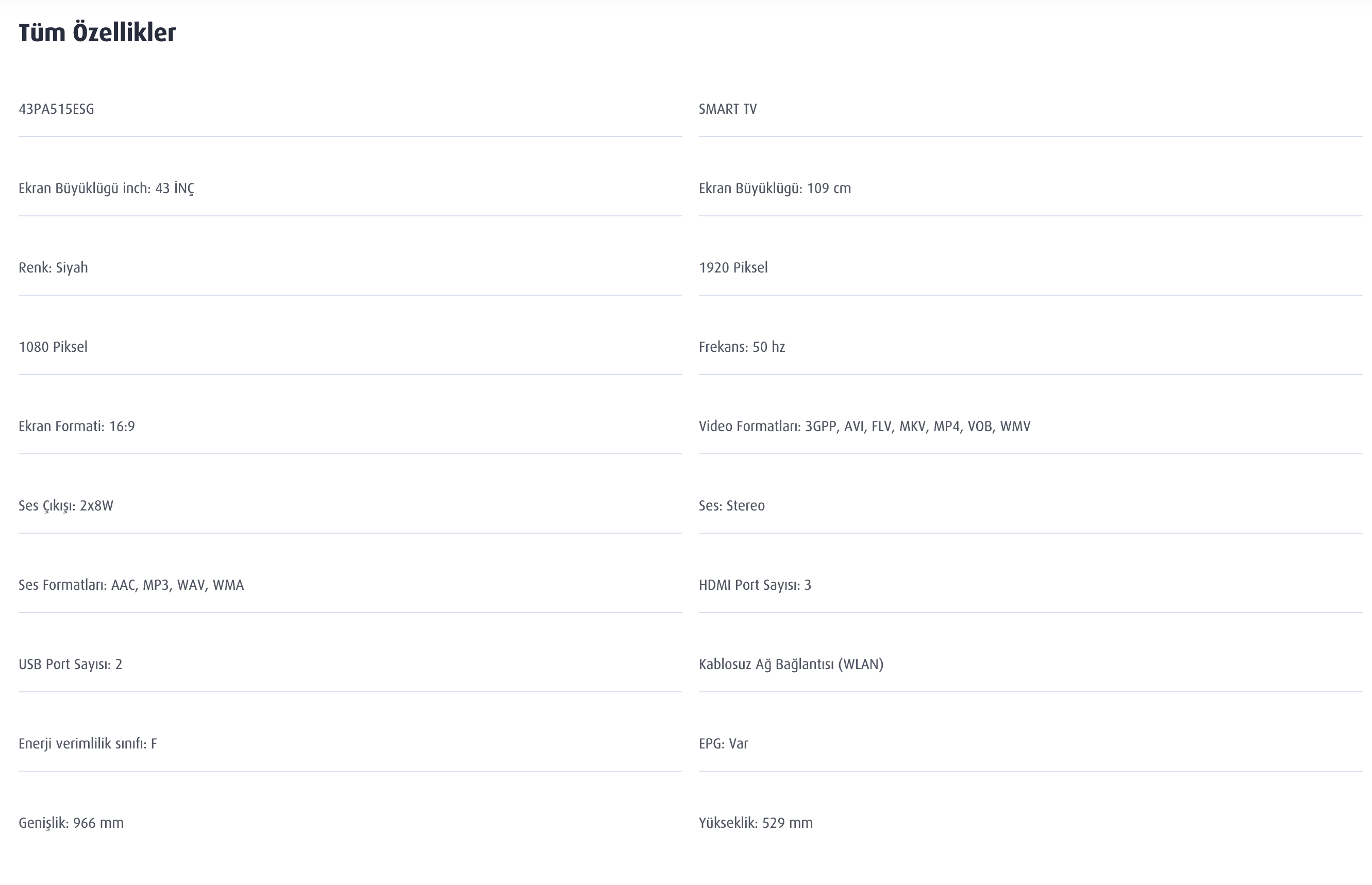 Profilo 43PA515ESG F Enerji Sınıfı 43'' 109 Ekran FULL HD Uydu Alıcılı Smart Led Televizyon