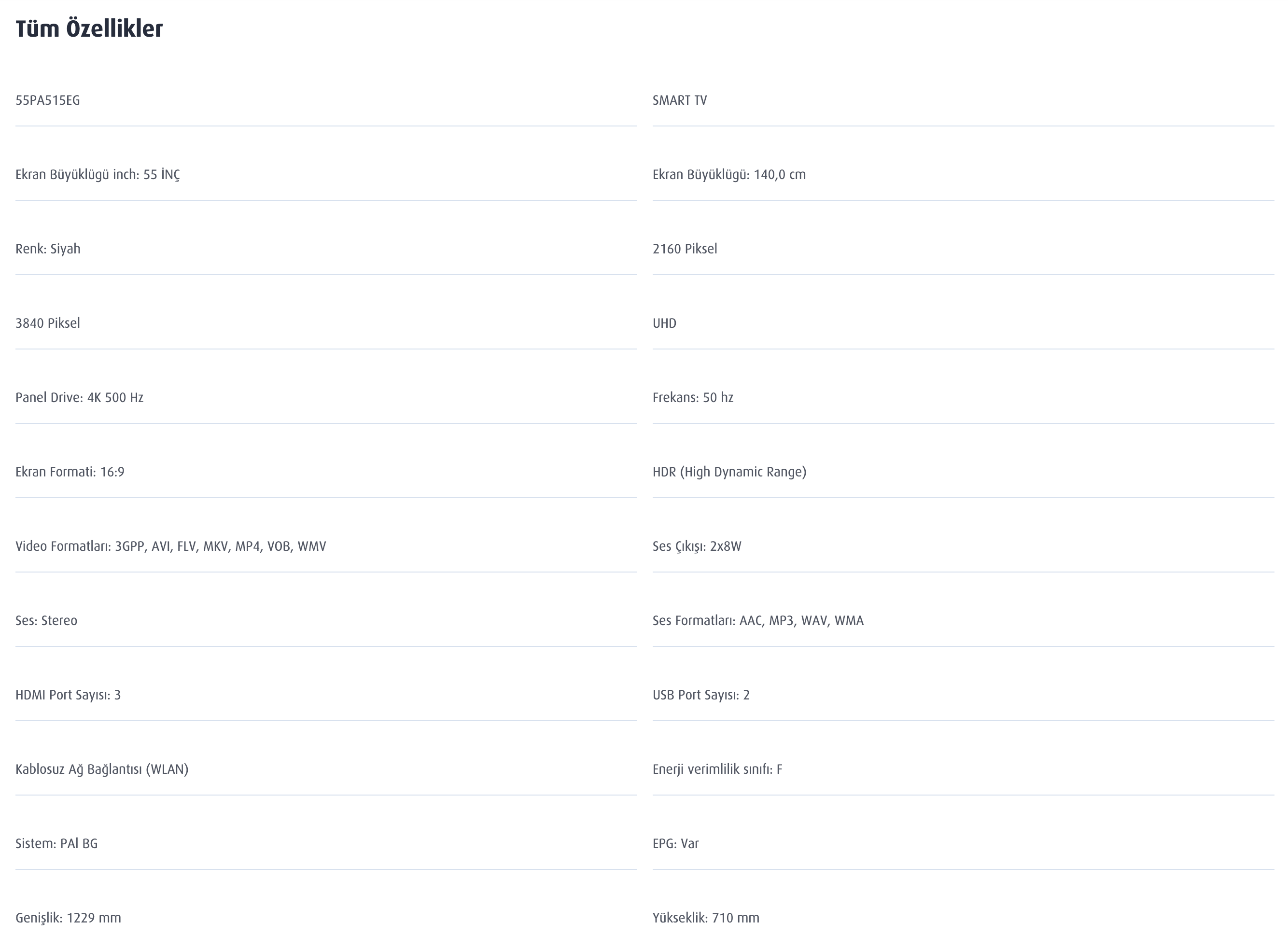 Profilo 55PA515EG E Enerji Sınıfı 55'' 140 Ekran Ultra HD Uydu Alıcılı Smart Led Televizyon