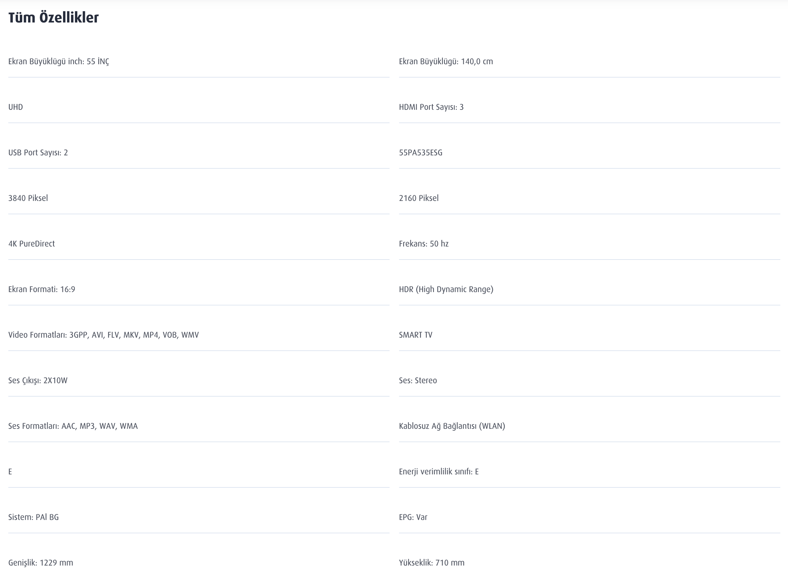 Profilo 55PA535ESG E Enerji Sınıfı 55'' 140 Ekran Ultra HD Uydu Alıcılı Android Led Televizyon
