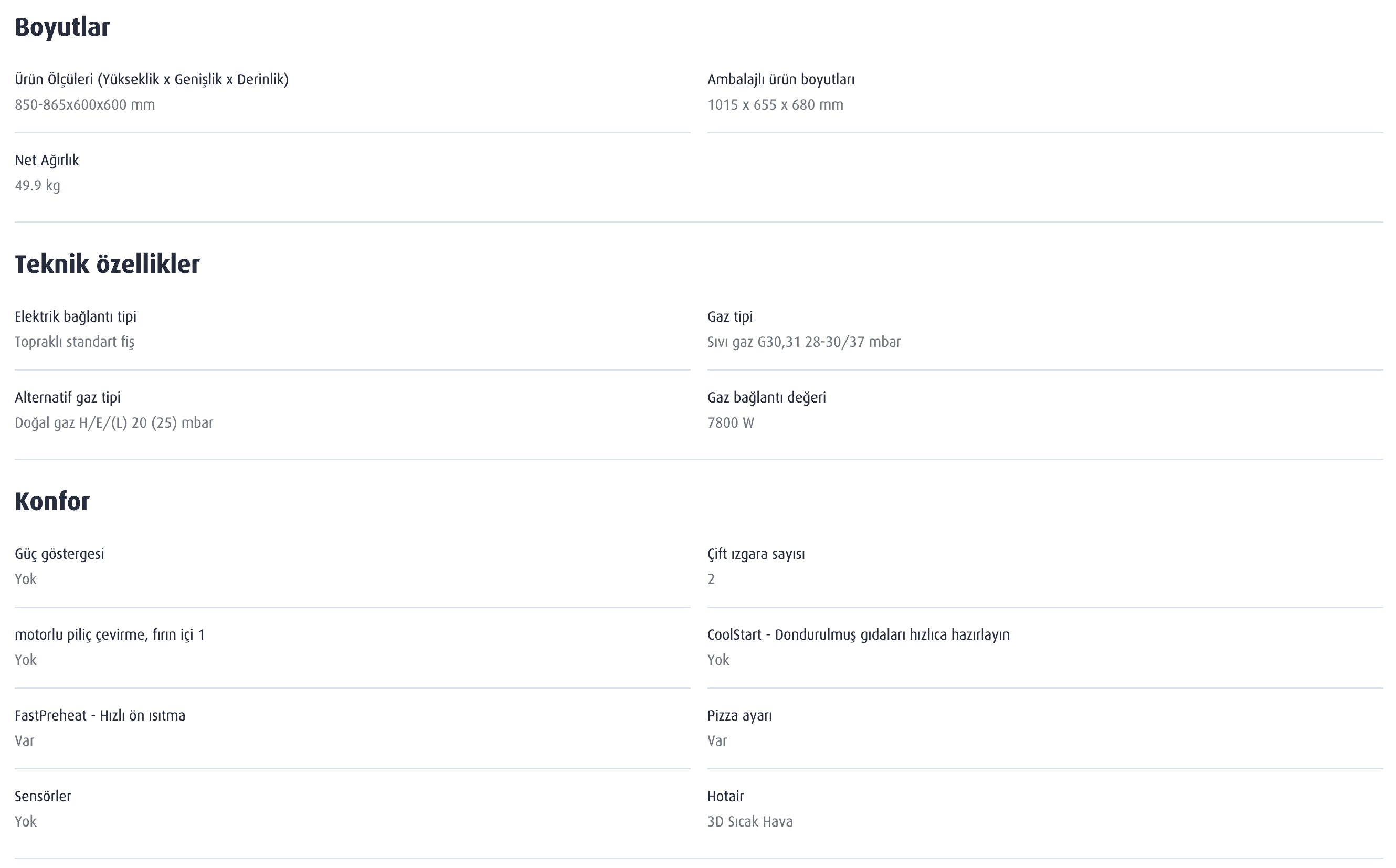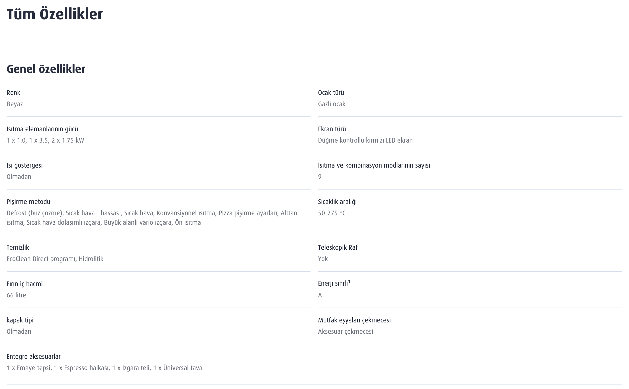 Profilo F0MS144HBL A Enerji Sınıfı 9 Programlı Gazlı Elektrikli Beyaz Solo Ocaklı Fırın