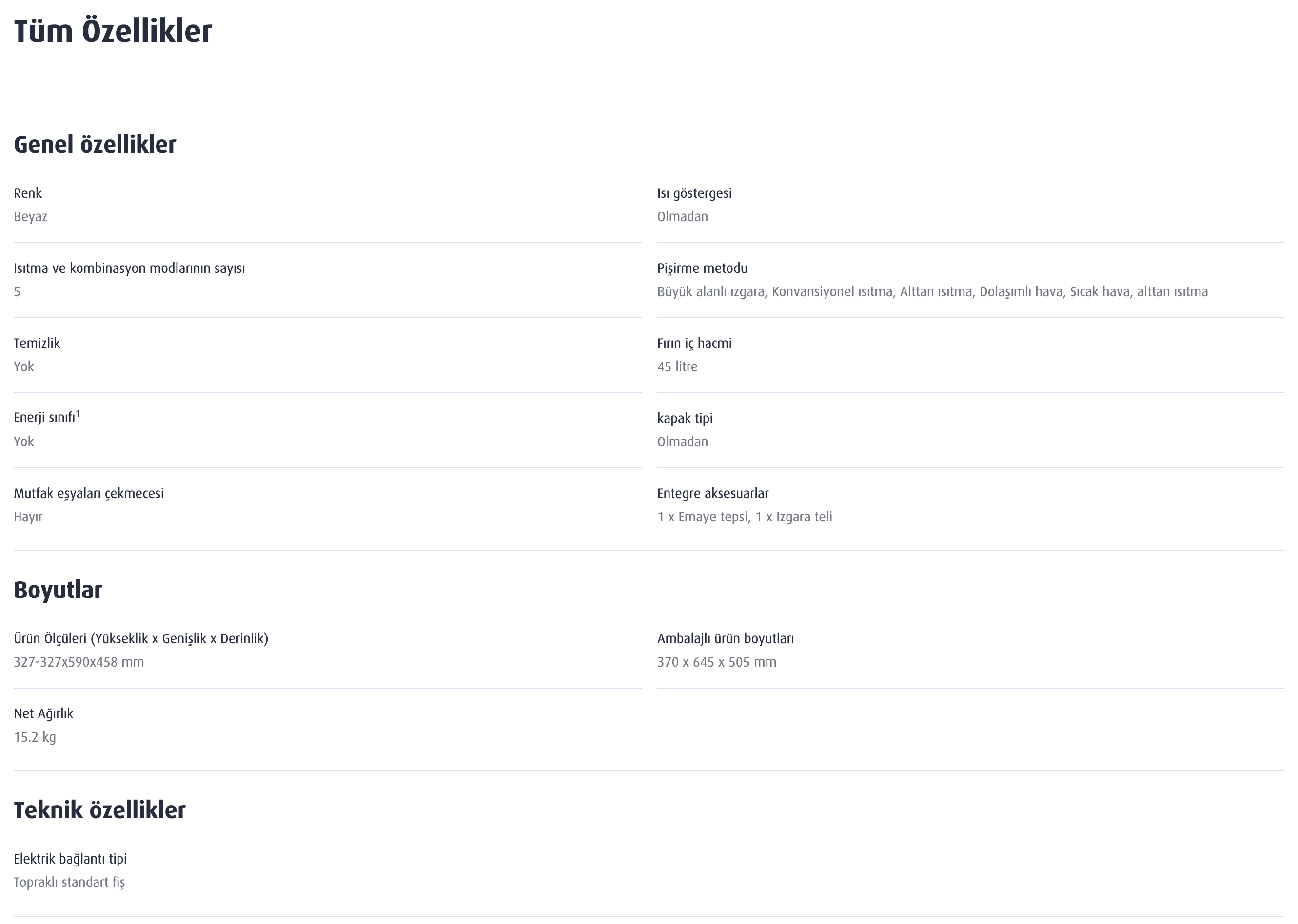 Profilo FMP212E48 5 Programlı 45 Lt Beyaz Midi Fırın