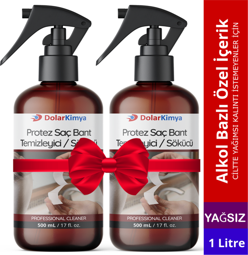 Protez Saç Bant Sökücüsü Temizleyicisi (Alkol Bazlı) | 2 x 500 mL, Protez Saç bantlarınızı kolay, hızlı ve güçlü bir şekilde sökebilirsiniz. Saç derinizde kalıntı bırakmaz. Sabun ve su ile kolayca durulayabilirsiniz. Cildinize zarar vermez. Gliserin içeriği ile cildi kurutmaz, yumuşatır.