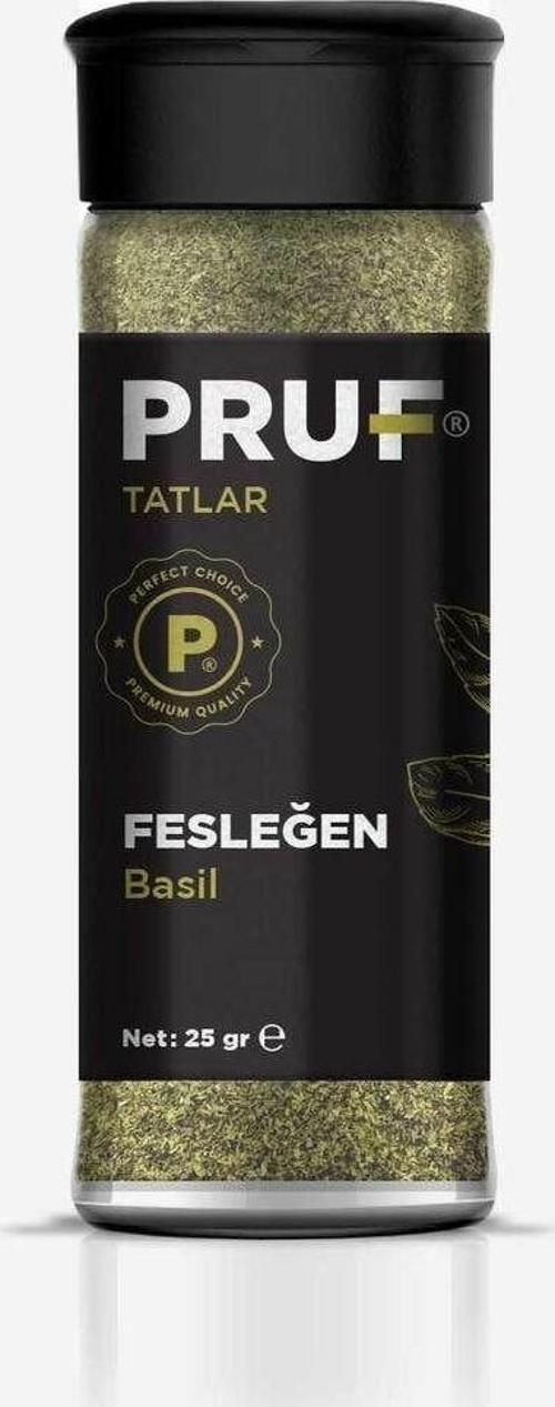Fesleğen, Lamiaceae (Ballıbabagiller) familyasına ait, güzel kokulu birbitki türüdür. Bilimsel adı Ocimum basilicum'dur. Fesleğen bitkisi, Asyakökenli olup, sıcak iklimlerde yetişme eğilimindedir. Baharat olarak kullanılanyaprakları, yemeklere karakteristik bir aroma ve lezzet katar. Fesleğen bitkisi, genellikle küçük çalı şeklinde büyür ve 30-60 cmyüksekliğe ulaşabilir. Yaprakları yeşil renkte, oval şekilli ve tüylüdür.Bitkinin çiçekleri genellikle beyaz veya mor renklidir. Fesleğen, özellikle İtalyan mutfağında yaygın olarak kullanılan birbaharattır. Pesto sosunun ana bileşenlerinden biridir. Aynı zamanda pizza,makarna sosları, çorba, salata ve deniz ürünleri gibi birçok yemeğe tat vearoma vermek için kullanılır. Fesleğen, ayrıca sağlık yararlarıyla da bilinir. İçeriğinde bulunan bazıbileşenler, antioksidan ve anti-inflamatuar özelliklere sahip olabilir. Ayrıcasindirimi kolaylaştırıcı, stresi azaltıcı, bağışıklık sistemini güçlendirici vekan şekeri seviyelerini düzenleyici etkilere sahip olduğu da araştırmalarlagösterilmiştir. Tüm Pruf ürünleri doğal ve katkısız ürünlerdir. Almış olduğunuz ürün