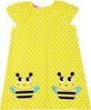 Poplin dokuma kumaştan, arı aplikeli şık ve eğlenceli elbise. Arının kanatları 3 boyutlu olarak aplike edilmiştir.