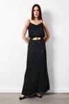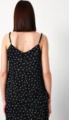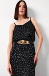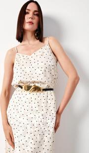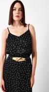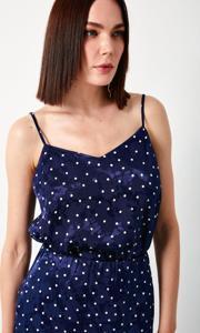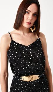 Ön arka v yaka, ayarlanabilir ip askılı, puantiye desenli salaş bluz.
