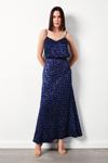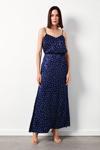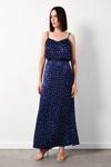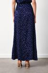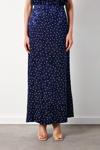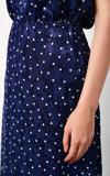 Yüksek lastikli bel, arka fermuarlı kapama, astarsız, puantiye desenli uzun etek.