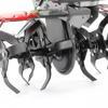 Çalışma aparatı, değiştirilebilir dövme bıçaklarla donatılmış altı adet kesiciden oluşur. Çıkarılabilir kesici takımlar sayesinde çalışma genişliği, basit bir pimle ayarlanabilen sıralar arasındaki boşluğa göre ayarlanabilir. Bu kültivatör, toprağı 24 cm derinliğe kadar işler. İki konumlu ayarlanabilir direksiyon simidi, en iyi tutuş için kontrollerin yüksekliğini boyunuza göre ayarlamanıza olanak tanır.