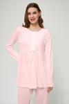 Pudra Kadın Uzun Kollu Hamile ve Lohusa Pijama Takımı 3'lü Set - L