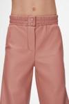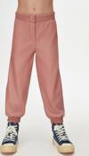 Pudra Pembe Kız Çocuk Çıtçıtlı Paça Büzgüllü Kışlık Deri Pantolon