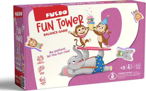 PUEDO Fun Tower, 3 yaş ve üzeri çocuklar için tasarlanmış, denge becerisini geliştirmeyi hedefleyen, eğitici ve eğlenceli bir denge kule oyunudur.