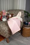 Pembe rengiyle dikkat çeken bu battaniye, 90x115 cm boyutlarındadır ve bebekler için ideal bir örtü seçeneğidir.