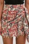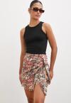 Pul Aksesuarlı Bağlamalı Mini Etek Bej