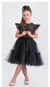 Lovetti Siyah Kız Çocuk Flamlı Viskon Askılı Elbise