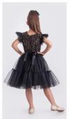 Pul Payet Katkat Tütü Etekli Kız Çocuk Elbise M00722 SİYAH - SARI