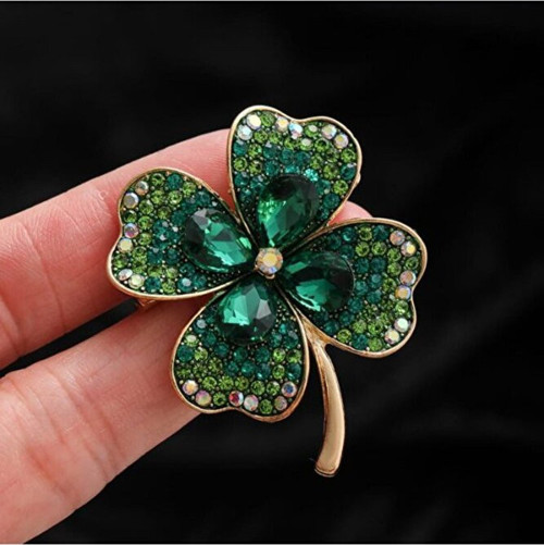 Punky Design Kore Tarzı Yeşil Zirkon Taş Şanslı Dört Yapraklı Yonca Broş Yaka İğnesi