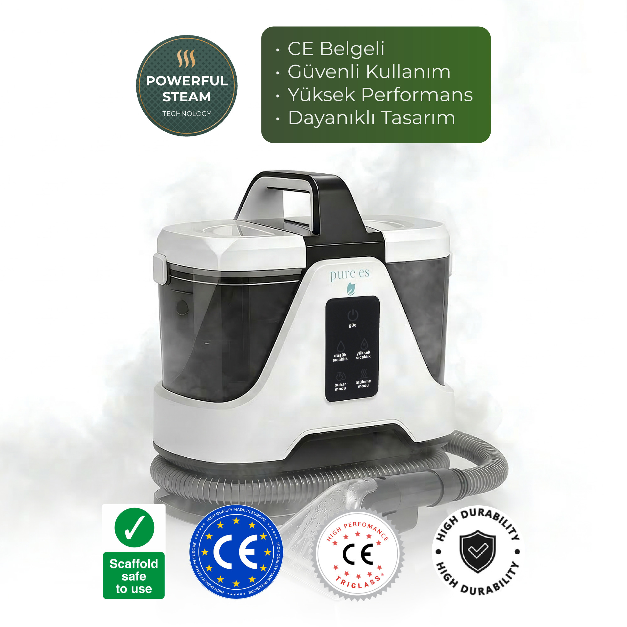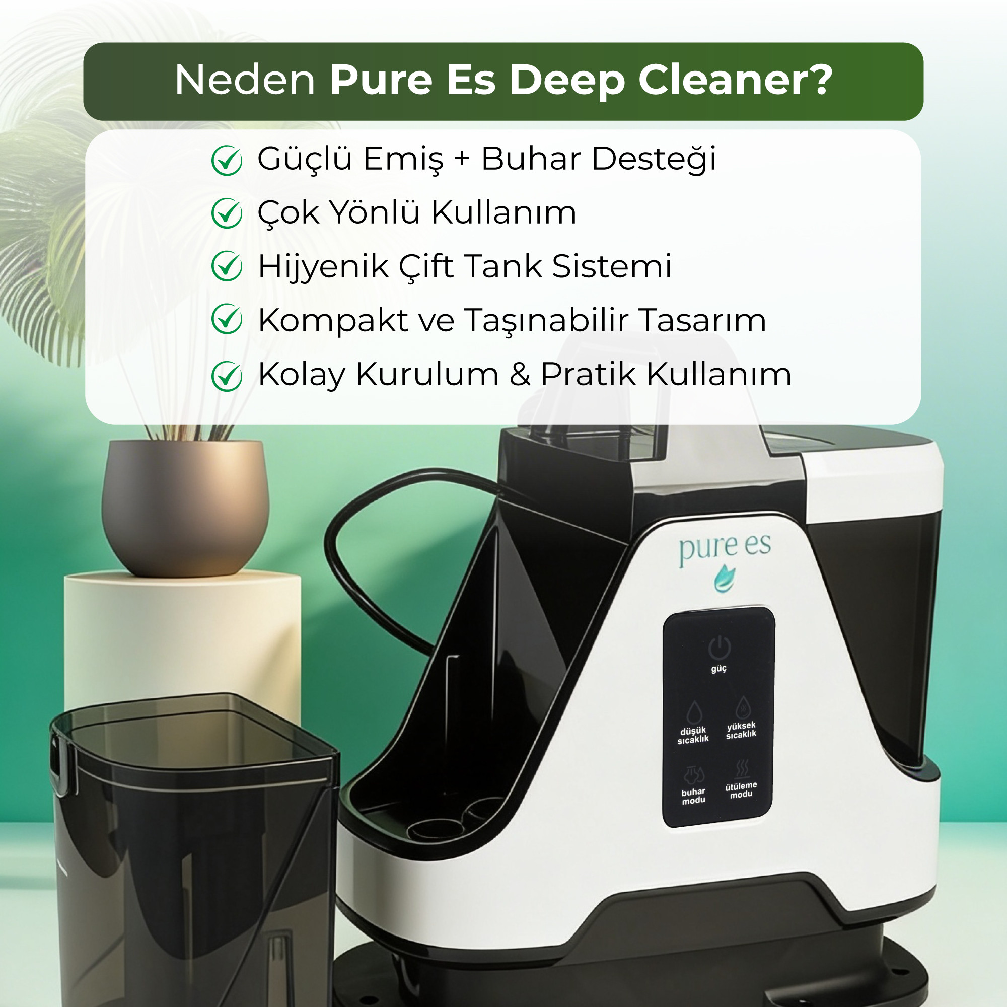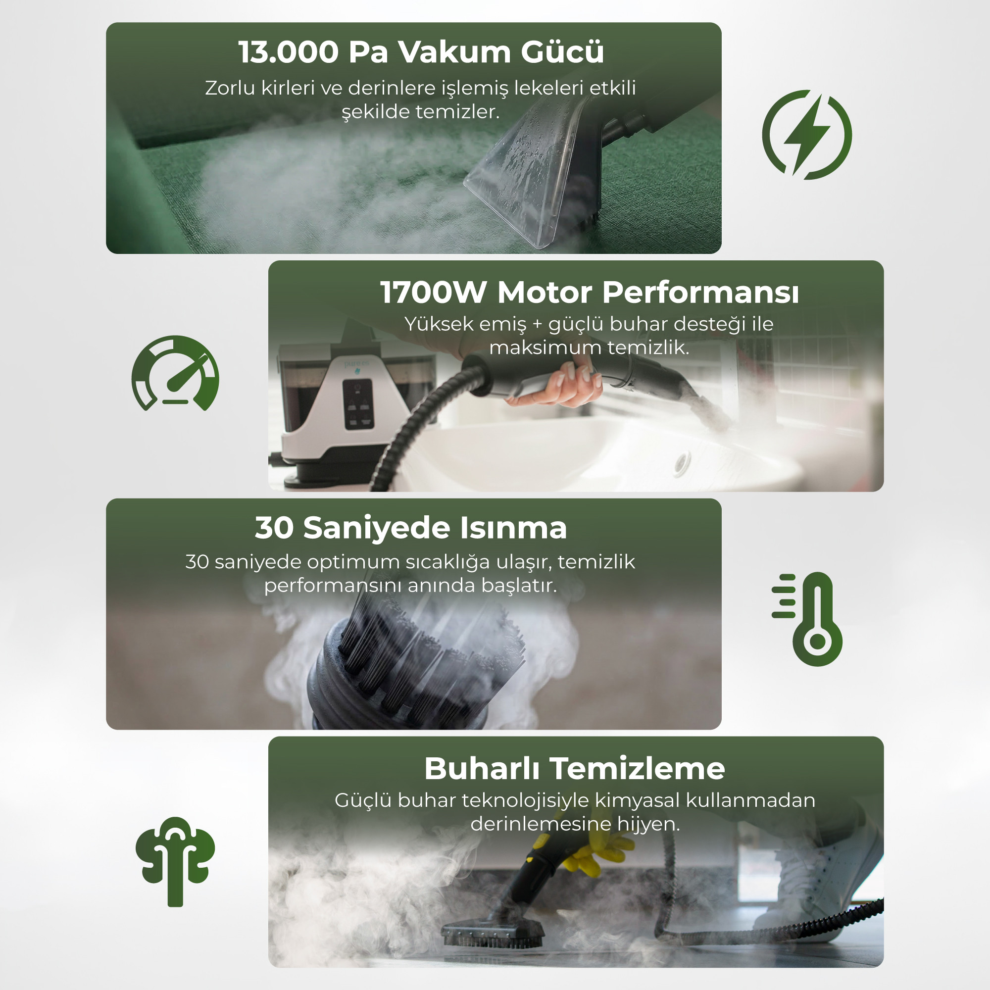 PURE ES DeepCleaner 13.000 Pa | Koltuk Yıkama | Ütüleme | Buharlı Temizleme | PetCare