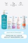 Günlük rutinde arındırma, cilt görünümünü yenilemeye destek, göz çevresi bakımı, yoğun nemlendirme ve geniş spektrumlu güneş korumasını tek sette birleştiren bakım rutini. Tüm cilt tiplerine uygundur.