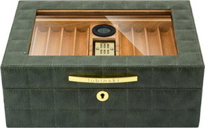 Lubinski Deri Camlı Humidor Puro Kutusu Yeşil 50s