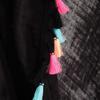 Renkli püskülleri ve siyah beyaz renk seçenekleriyle dilediğiniz şekilde kombinleyebilir, plaj modasında fark yaratabilirsiniz.