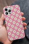 İphone 13 Pro Uyumlu Papatya Tasarımlı Şeker Pembe Premium Telefon Kılıfı