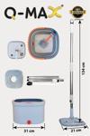 Q-Max Kirli İle Temiz Suyu Ayıran Kare Döner Başlıklı Yedek+2 Mikrofiber Mop Bez Hediyeli Vilada Kova Seti