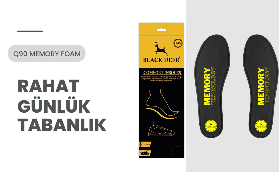 Black Deer Q90 Memory Foam Spor Ayakkabı İç Tabanlık,Yumuşak Ortopedik Tabanı,Rahat Tabanlık,Erkek,Kadın,SİYAH