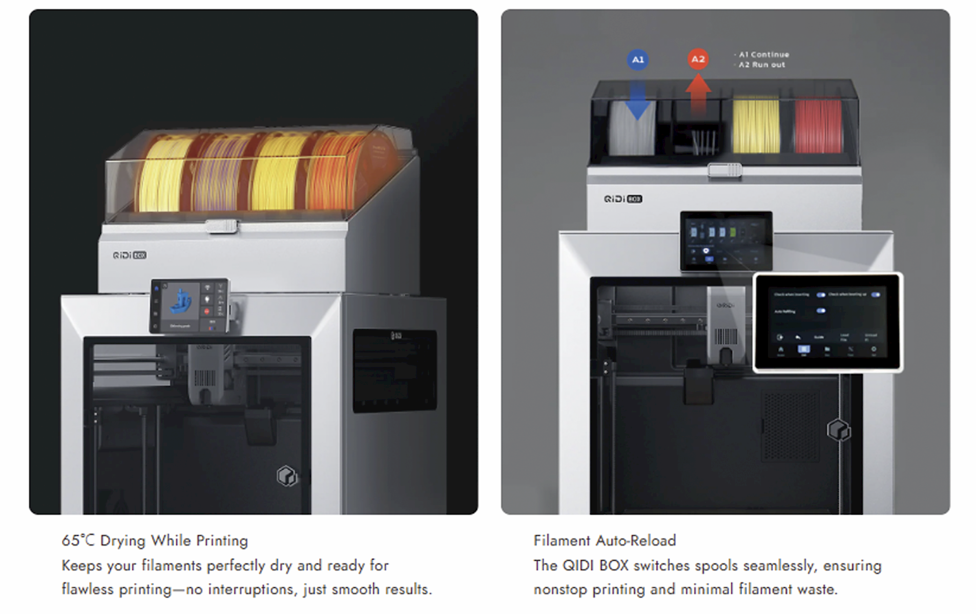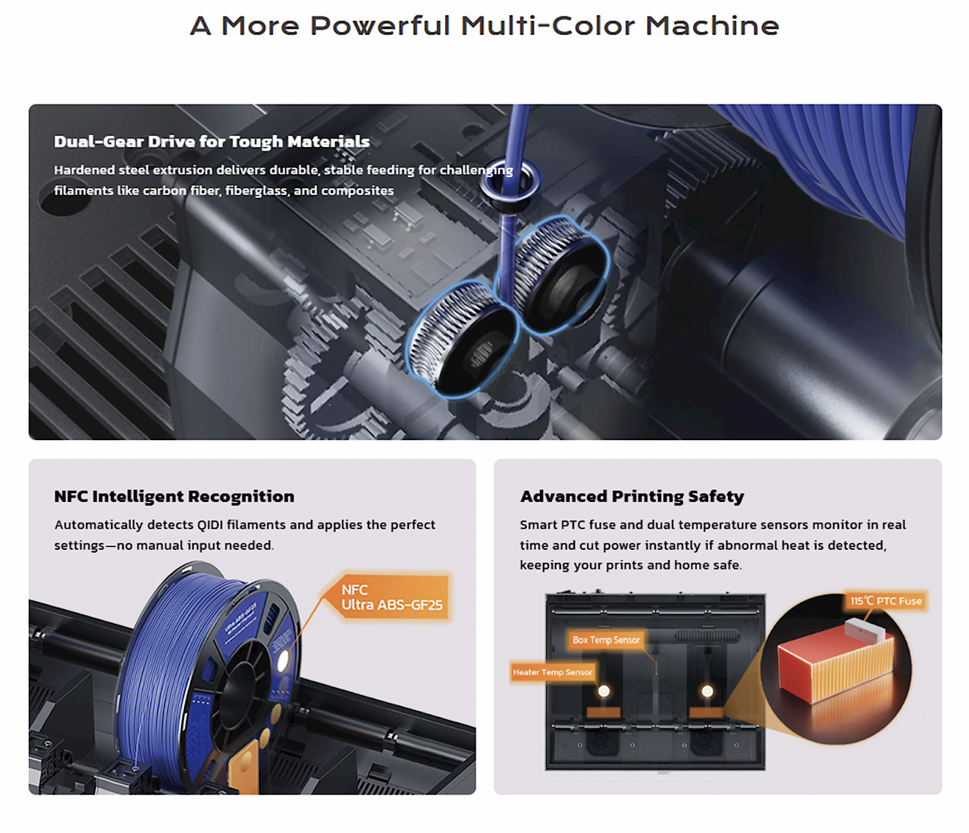 Desteklenen Filamentler: PLA, ABS, ASA, PETG, TPU, PA, PC, karbon veya cam elyaf takviyeli filamentler