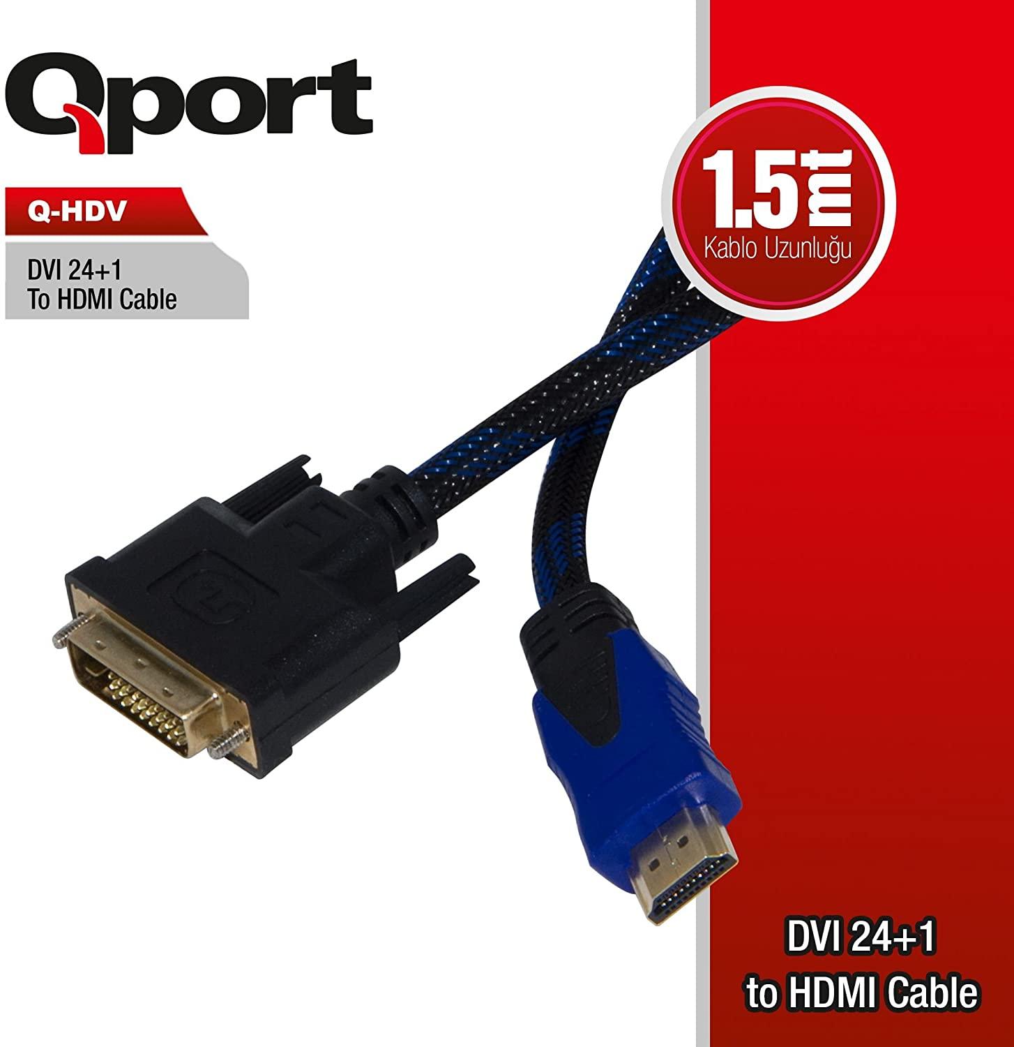 Q-HDV DVI 24+1 To HDMI 1.8 Metre Çevirici Kablo