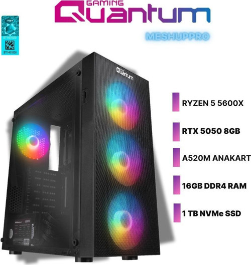 Quantum Gaming MeshupPro EV1810 Ryzen 5 5600X 16GB DDR4 1TB NVMe RTX5050 8GB Oyuncu Masaüstü Bilgisayarı