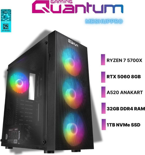 Quantum Gaming MeshupPro EV1812 Ryzen 7 5700X 32GB DDR4 1TB NVMe MSI RTX5060 8GB Masaüstü Oyuncu Bilgisayarı