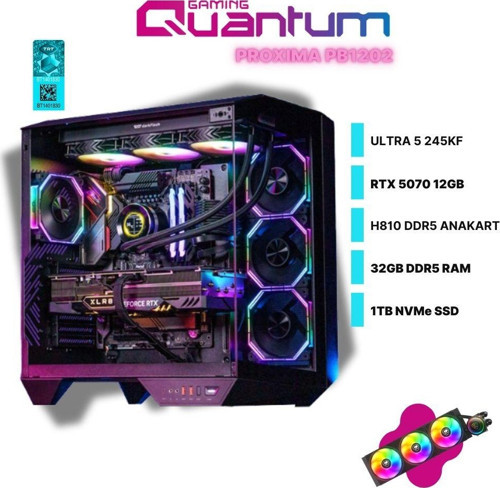 Quantum Gaming Proxima PB1202 Ultra 5 245KF 32GB DDR5 1TB NVMe SSD RTX5070 12GB 360mm Sıvı Soğutmalı Oyuncu Masaüstü Bilgisayar