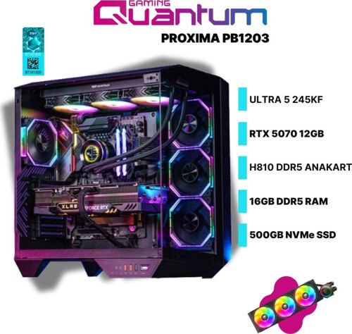 Quantum Gaming Proxima PB1203 Ultra 5 245KF 16GB DDR5 500GB NVMe RTX5070 12GB 360mm Sıvı Soğutmalı Gaming Desktop