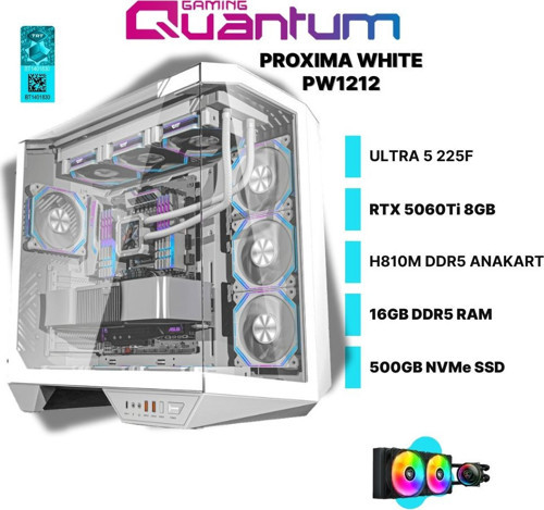 Quantum Gaming Proxima White PW1212 Ultra 5 225F 16GB DDR5 500GB NVMe 5060TI 8GB 240mm Sıvı Soğutmalı Masaüstü Oyuncu Bilgisayarı