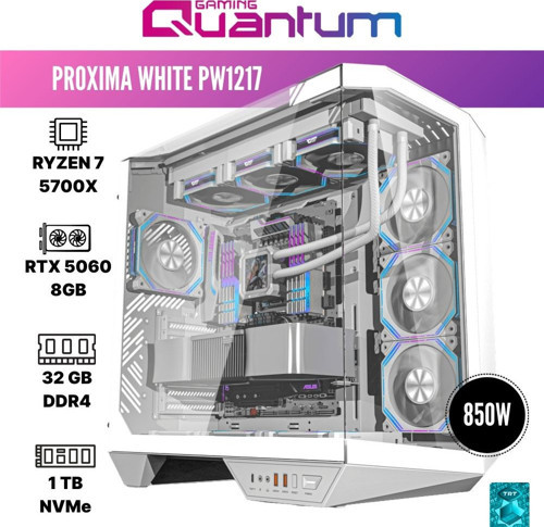 Quantum Gaming Proxima White PW1217 Ryzen 7 5700x 32GB DDR4 1TB NVMe RTX5060 8GB Masaüstü Oyuncu Bilgisayarı