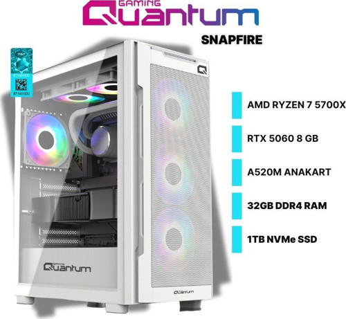 Quantum Gaming SnapFire White Ryzen 7 5700X 32GB DDR4 1TB NVMe RTX5060 8GB Masaüstü Oyuncu Bilgisayarı