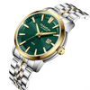 Zarif yeşil kadranı ve dikkat çekici tasarımıyla öne çıkan Quantum otomatik kol saati, modern stilin güçlü ve sade bir yansımasıdır. 41 mm kasa çapı ile bilekte dengeli ve iddialı bir duruş sunan bu model, günlük kullanımda hem şıklığı hem de sağlamlığı bir arada sunar. Paslanmaz çelik kasa ve gri renkli çelik bilezik, saatin sofistike ve zamansız çizgilerini tamamlar. Mineral cam, çizilmelere karşı yüksek dayanıklılık sağlarken, yansıma önleyici kaplama ile her açıdan net bir görüş imkânı sunar. Yeşil kadranı, yalın ve şık detaylarıyla dikkat çekerken, sade tasarımıyla hem klasik hem de modern giyim stilleriyle uyum sağlar. Otomatik mekanizması, kol hareketiyle kendini sararak pile ihtiyaç duymadan enerji üretir. 10 ATM (100 metre) su geçirmezlik seviyesi, günlük su temaslarına ve yüzmeye karşı güvenli kullanım sunar. Şıklık, dayanıklılık ve teknik üstünlüğü bir araya getiren Quantum otomatik saat, stil sahibi kullanıcılar için ideal bir tercihtir.