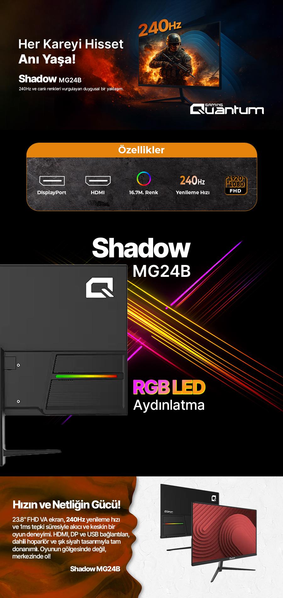Quantum Shadow MG24B FHD VA 240Hz HDMI+DP+USB Dahili Hoparlör 23.8" Flat Siyah Gaming Monitör QNMNT10F080955