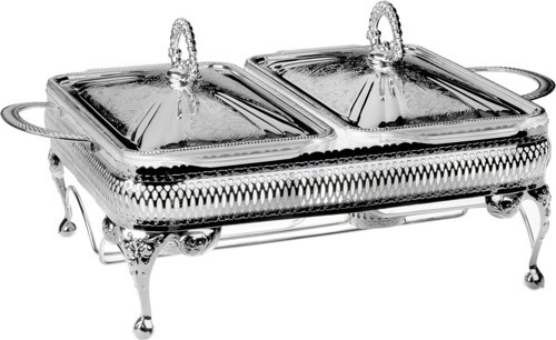Queen Anne İngiliz Gümüşü İki Bölmeli Isıtıcılı Yemek Servislik 41 x 28 x 19 cm