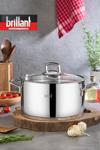 Brillant Queen çelik tencere, 304 kalite 18/10 paslanmaz çelikten üretilmiş olup hem dayanıklılığı hem de zarif görünümü ile mutfağınıza değer katar.