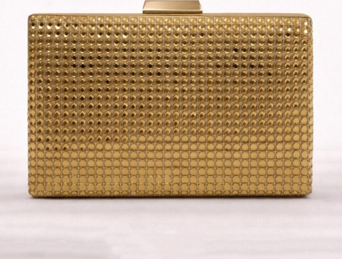 Şık ve modern tasarımıyla öne çıkan altın renk metal örgü abiye clutch çanta, özel davet ve gece kombinleriniz için ideal bir tamamlayıcıdır.