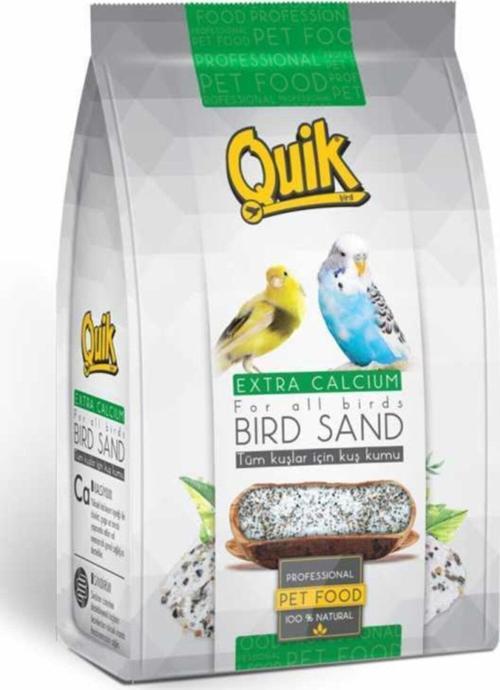 Quik Kuş Kumu 250 grKuşların yediği yemleri öğütmesinde etken rol oynayan, içeriği kuşların doğadaki ihtiyaçları dikkate alınarak fırınlanmış çok önemli bir ek besindir. Kuşların yediklerini daha rahat ve etkili sindirmelerinin sağlar. Yumurtlama dönemlerinin verimli geçmesi ve yavruların daha sağlıklı büyümesi de kalsiyum ve mineral içeren kuş kumuna bağlıdır.KalsiyumYüksek kalsiyum içeriği ile iskelet, gaga ve tırnak yapısında etkin rol oynayarak kuşların genel sağlığını destekler.SindirimSindirim sistemini destekleyerek kuşların beslenmelerinde yüksek oranda faydalanmasını sağlar.Özel AmbalajSon teknoloji ambalajlama teknikleri ve malzemeleri ile paketlenerek son tüketim tarihine kadar tazeliğini korur.İçindekilerTatlı su ile yıkanıp elendikten sonra 80 derecede fırınlanmış doğal kum, Nijer ve kabuksuz tahıl kırıntıları, TuzBeslenme ÖnerisiKuş kumumu ister yemin içerisine isterseniz ayrı bir yemlikte verebilirsiniz.Koli içerisinde 12 adet Quik Kuş Kumu 250 gr bulunmaktadır.