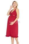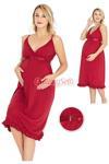 Quilling Kırmızı Renk Asklılı Kol 54480 Lohusa Hamile Gecelik, Hamile Elbisesi