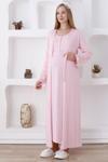 Quilling Pembe Renk Dantel Detaylı Sabahlıklı 2 Parça Lohusa Hamile Gecelik Takım - 2283