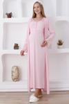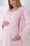 Quilling Pembe Renk Dantel Detaylı Sabahlıklı 2 Parça Lohusa Hamile Gecelik Takım - 2283