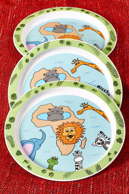 Qutu markası tarafından üretilen plastik kahvaltı tabağı seti 3 adet 21.5 cm çapında hayvan desenli tabaktan oluşmaktadır.