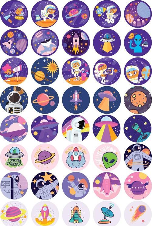 Quun 40 Adet Roket Astronot Space Uzay Temalı Sticker Etiket Seti - Ajanda, Telefon, Tablet,Defter,Laptop