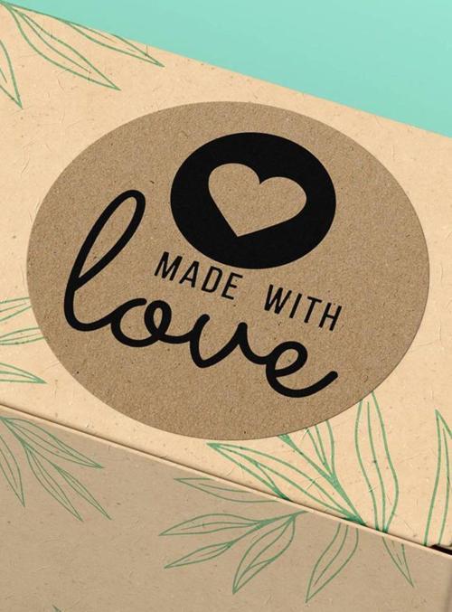 Quun 4X4Cm - 45 Adet - Kraft Görünümlü Etiket Hand Made Yazılı Kargo Paketleme Ürün Etiket Sticker St2150