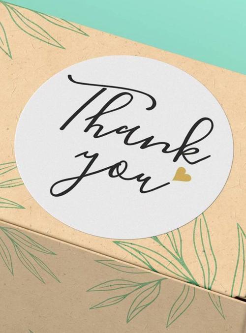 Quun 4X4Cm - 45 Adet - Thank You Sticker Teşekkürler Paketleme Ambalaj Ürün Etiketi Kuşe Siyah - St2062