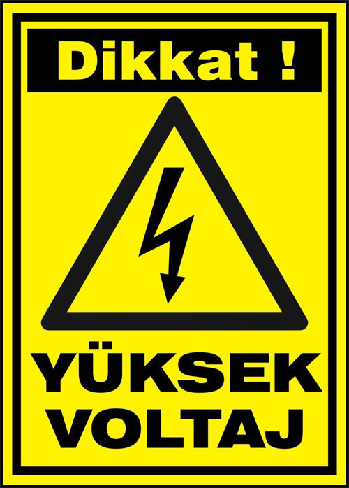 Dikkat Yüksek Voltaj Kendinden Yapışkanlı Etiket 17,5 X 25 Cm